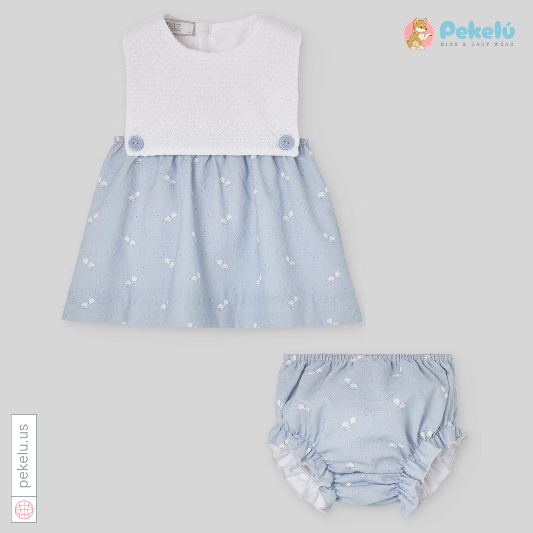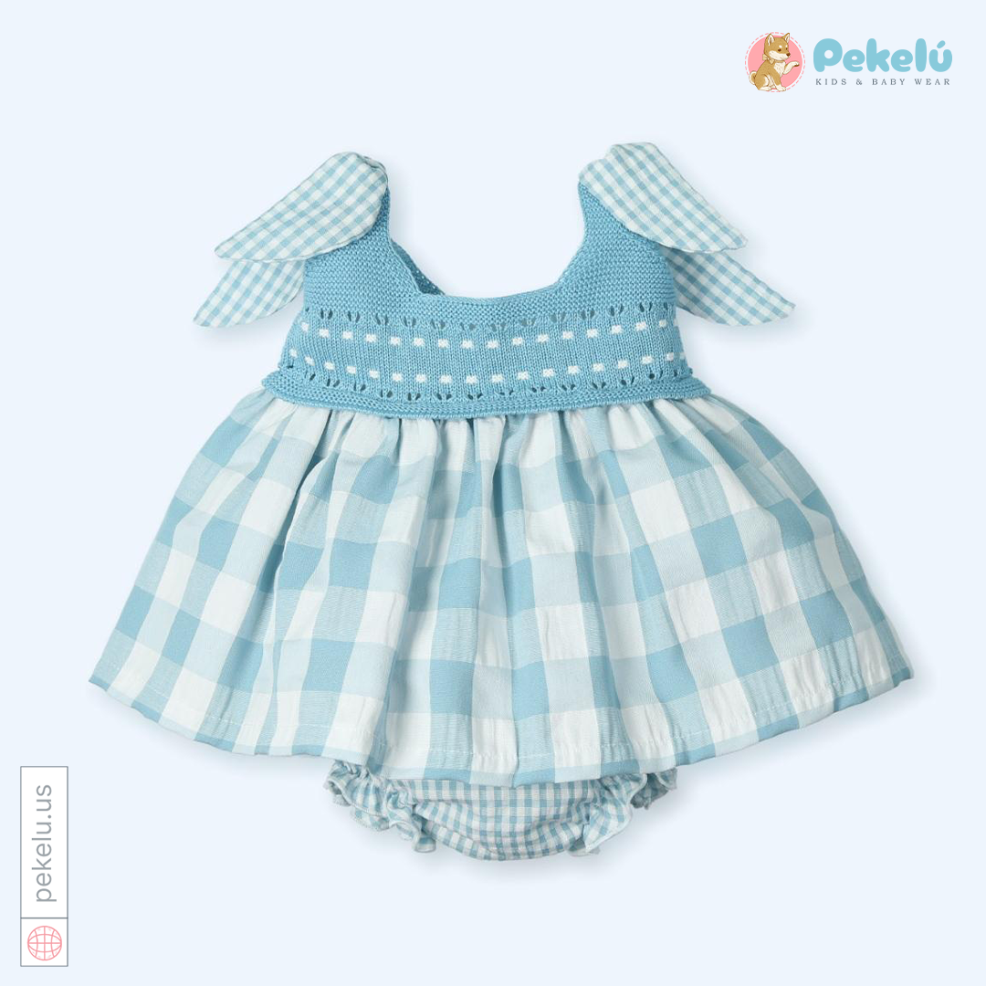 Knit And Fabric Dress Set With Bloomer Conejos